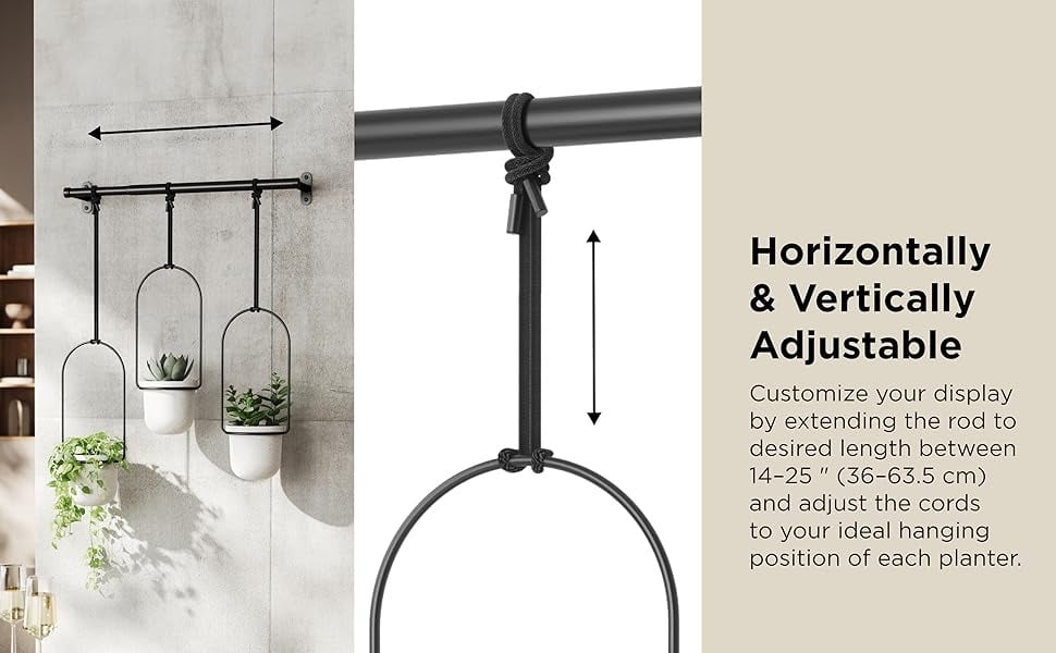 📏 Fully Adjustable Layout-Slide pots anywhere along the rod and adjust rope lengths to create your own balanced, customized plant arrangement.