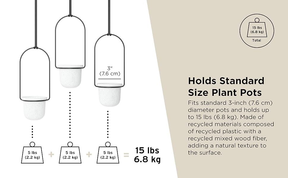 🔩 Strong Metal Support Rod-Made from durable metal with a stable structure, ensuring each pot hangs securely and safely (supports up to 15 lbs / 6.8 kg total).