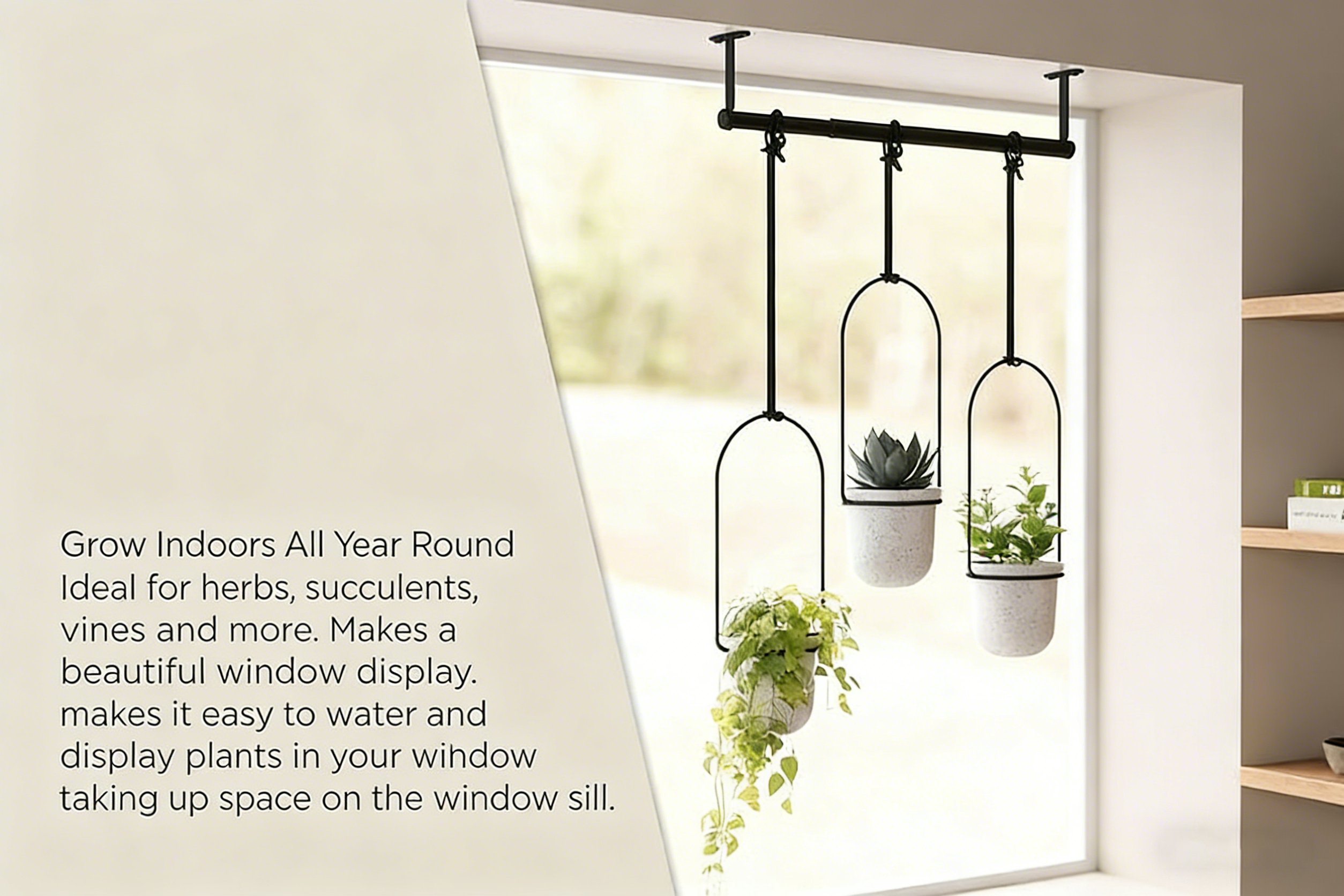 Love plants but short on space?This hanging planter transforms your window into a fresh, vertical garden—adding greenery, lightness, and style to your home.Easy to install, simple to adjust, and designed to look beautiful from every angle, it’s more than a planter—it’s a functional décor piece that elevates your everyday living space.