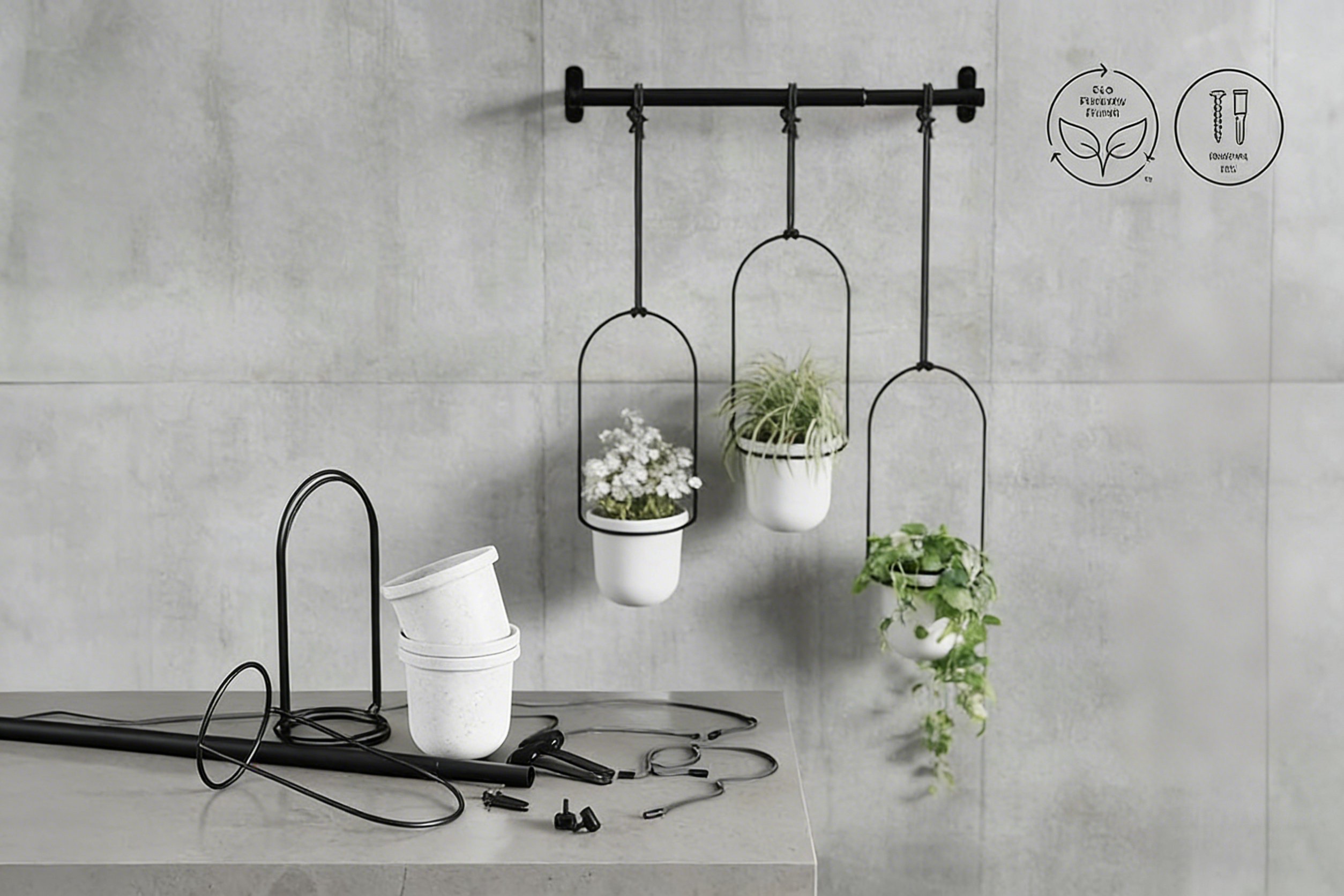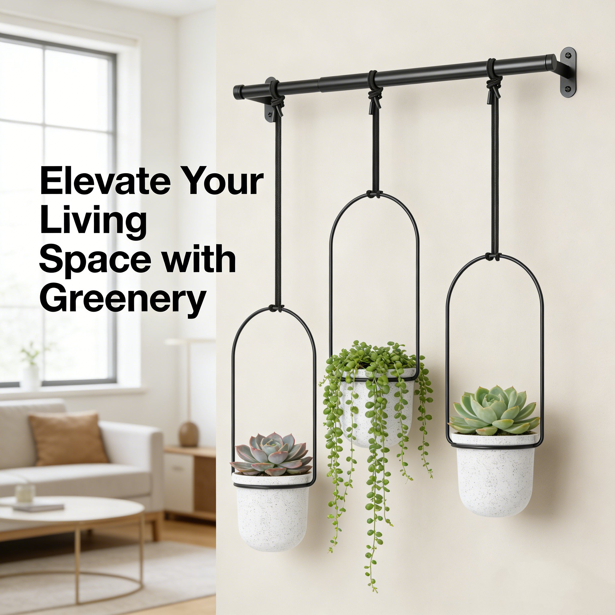 Turn unused window and wall space into a living plant display.This adjustable hanging planter system combines the function of a curtain rod with the beauty of suspended greenery—creating a clean, modern way to grow herbs, succulents, and trailing plants indoors or outdoors.Designed with a strong metal support rod, adjustable hanging ropes, and lightweight yet durable pots, it allows you to customize the position, height, and spacing of each plant with ease. Whether mounted on a wall, ceiling, or window frame, it brings nature into your space—without cluttering your floor or windowsill.